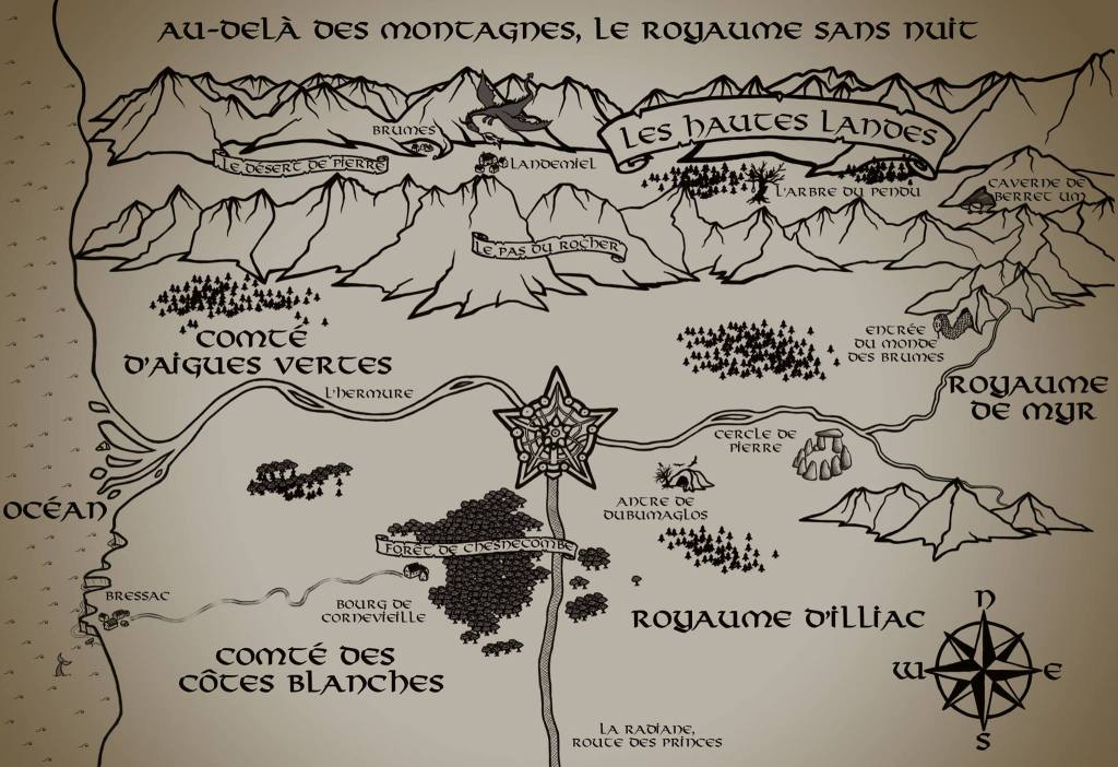 Dans la trilogie fantastique, la communauté d’Aedan est composée de tous ceux qui se reconnaissent comme ses sujets, ses amis, et lui prêtent allégeanc. Ils sont issus des septs royaumes et se rattachent ensuite au peuple des Hautes Landes, terre de promesse située à la frontière du Royaume sans Nuit.